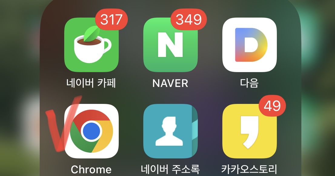 휴대폰에 설치된 앱 구글 브라우저 Chrome(크롬) 앱을 실행합니다.