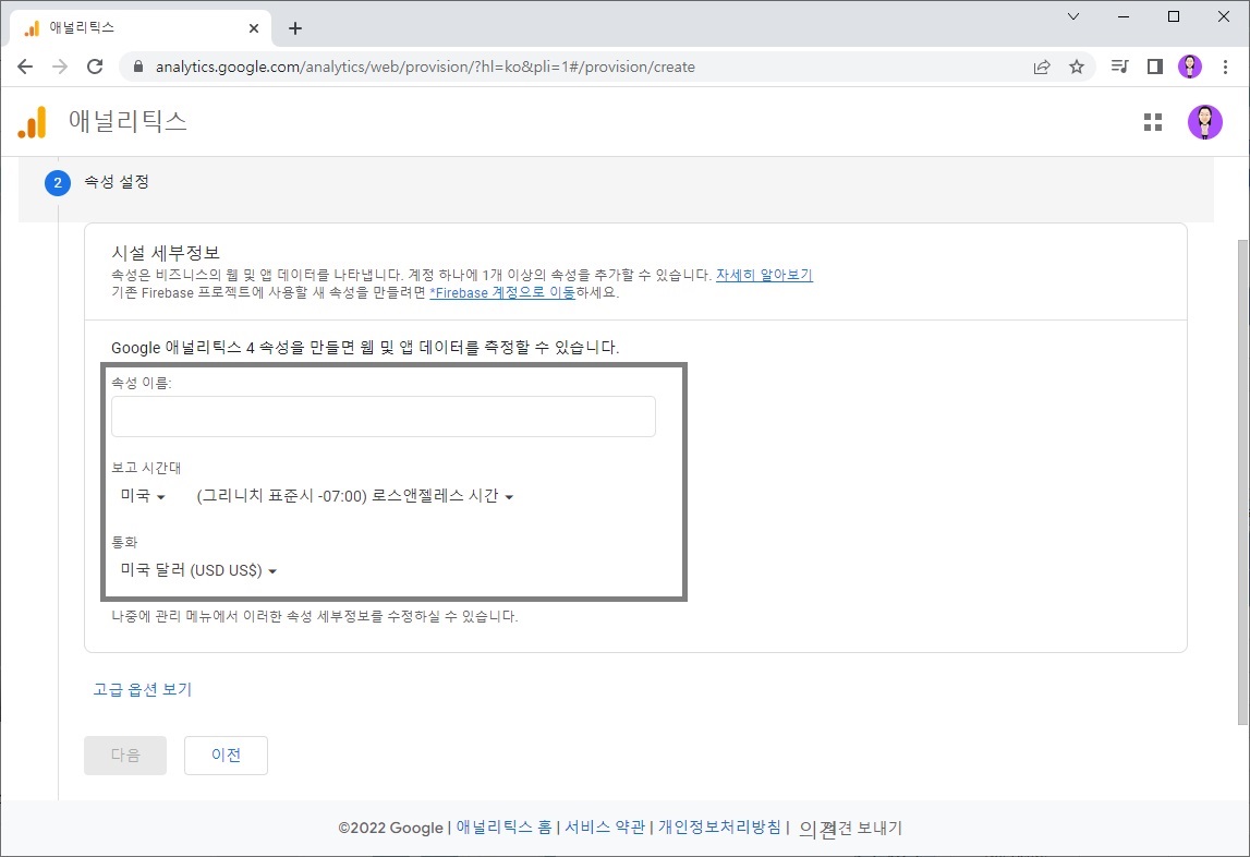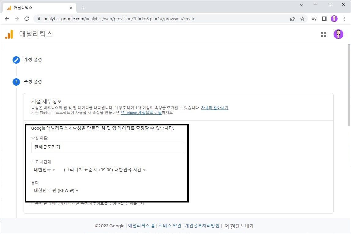 속성이름은 연결한 사이트의 애널리틱스 타이틀이름이라고 생각하시면 됩니다.