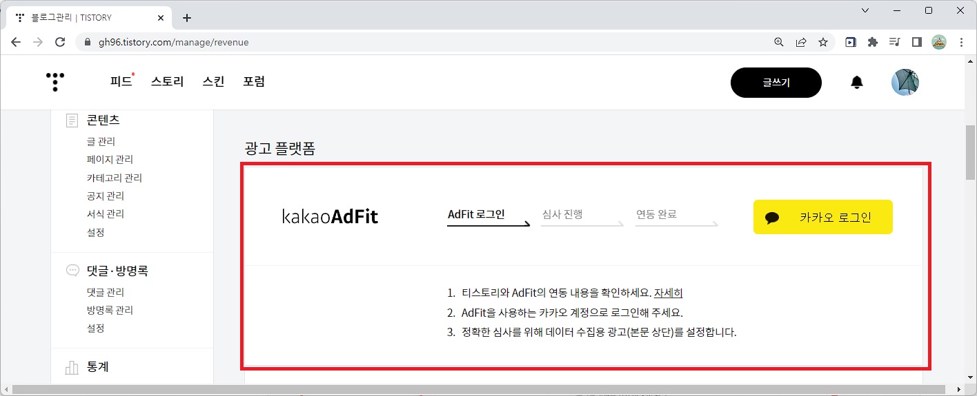 티스토리 광고 플랫폼인 카카오 애드핏 연동하는 방법 알려드립니다.