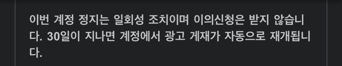 추가로 이의신청을 받지 않고 30일이 지나면 자동으로 재개된다고 합니다.