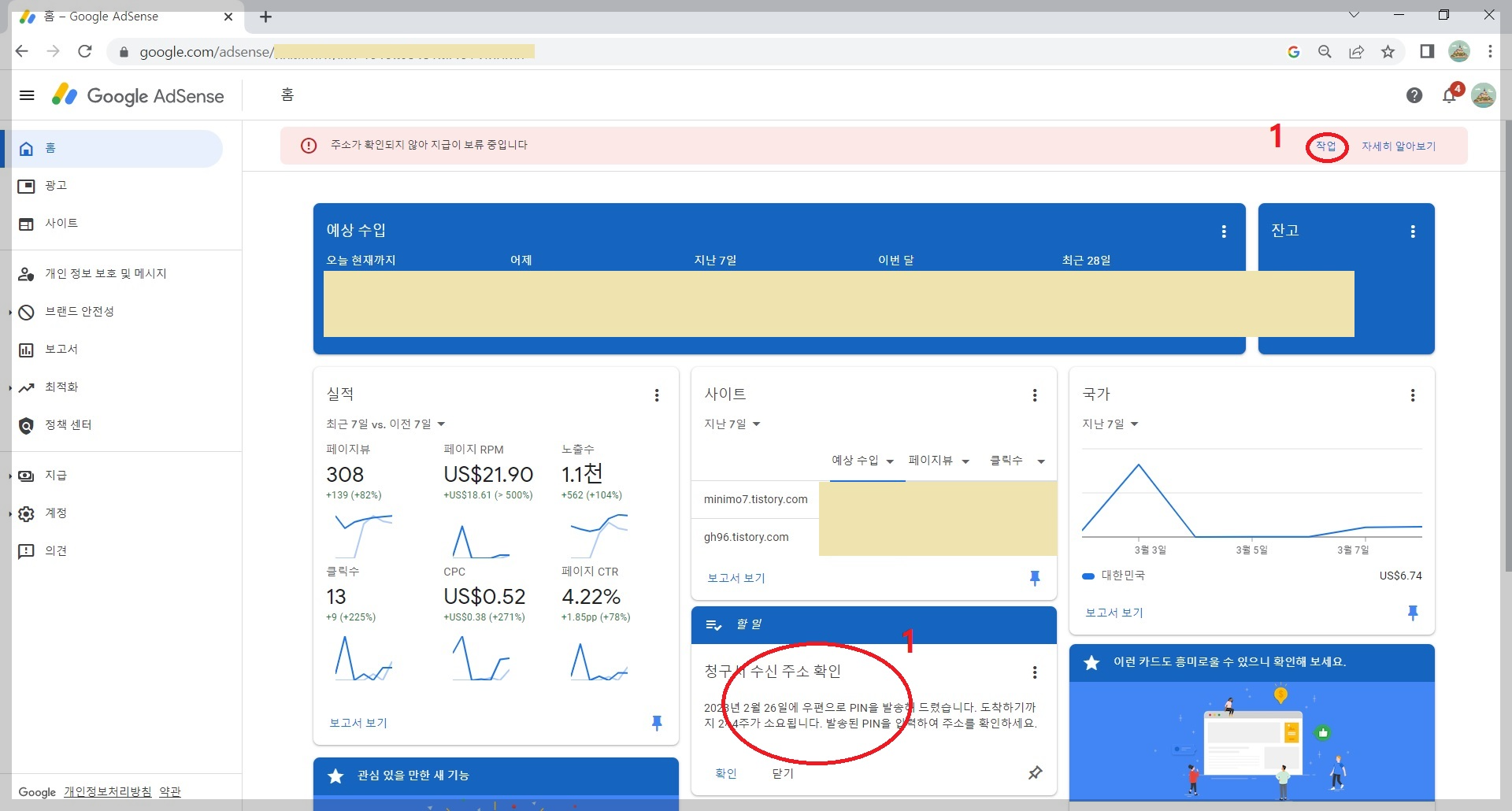 구글 애드센스 계정 집주소 인증하기, 인증 받기 방법 안내드립니다.