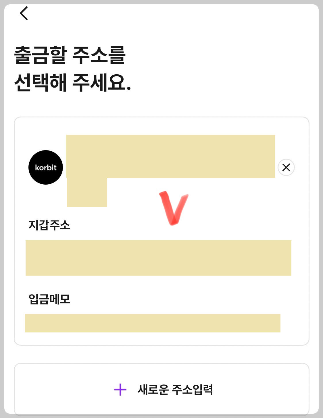 >> 출금할 주소 선택하기