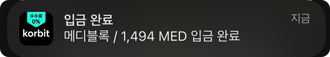 코빗에 들어가서 확인을 해보니 MED가 KRW라는 원화로 환산되어 나의 보유 자산으로 입금확인 할 수 있었어요.